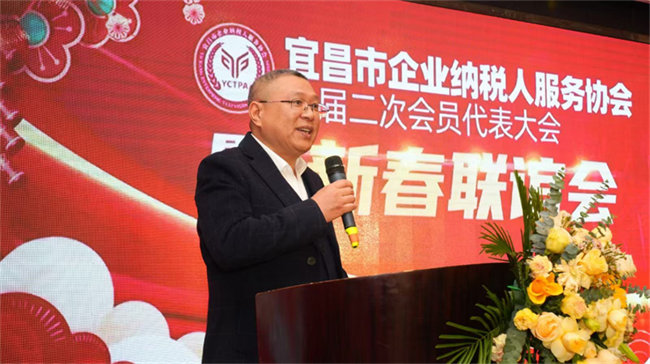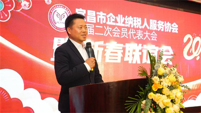 协会会长殷书国致欢迎辞,他首先向到场的各位领导、嘉宾以及协会会员表示了热烈的欢迎和衷心的感谢。他提到,正是有了大家的支持与参与,宜昌市企业纳税人服务协会才能不断发展壮大,成为企业之间交流合作的重要平台。