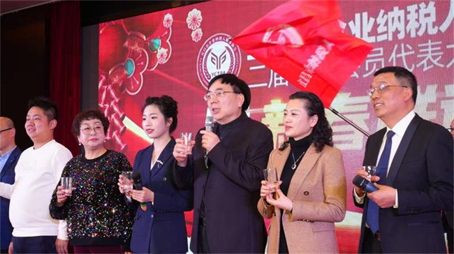 在激昂的氛围中,协会领导班子成员和会员代表共同合唱会歌《纳税人之歌》,歌声嘹亮,响彻全场,每一个音符都凝聚着协会的向心力,彰显出企业的壮志豪情与使命担当。