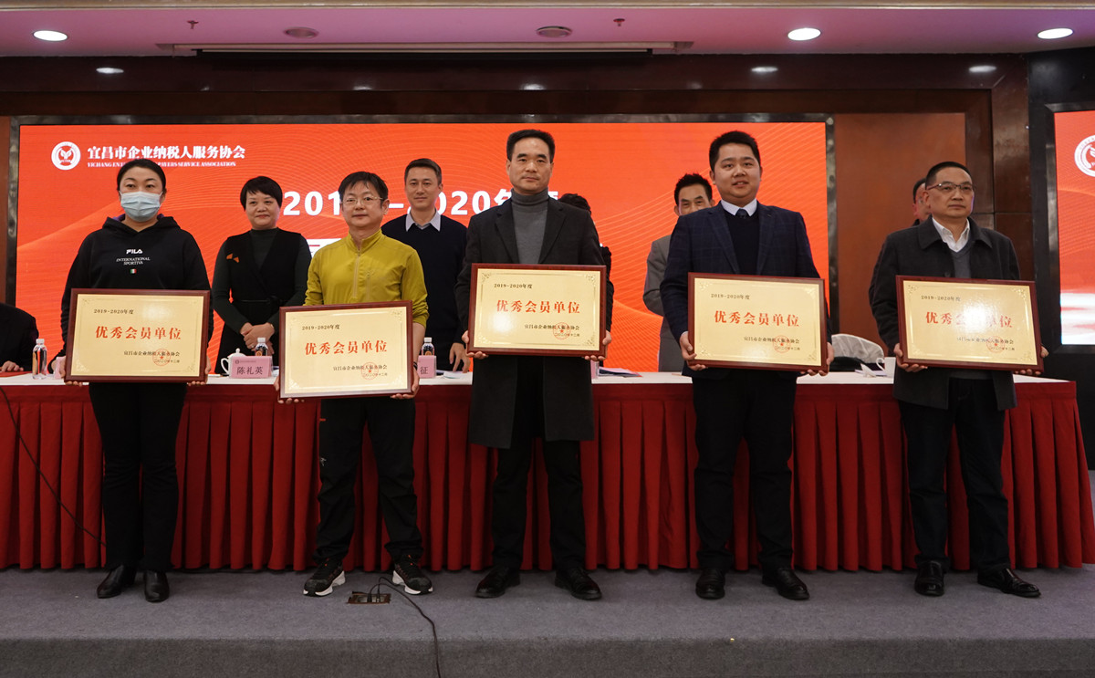 会上,协会常务副会长兼秘书长殷书国宣读了《关于表彰2019~2020年度优秀会员单位的决定》,湖北宏峰房地产发展有限责任公司、湖北坤洁建设有限公司、宜昌猴王焊丝有限公司、湖北陈守邦律师事务所、湖北税友助贷服务有限公司、中国人民财产保险股份有限公司宜昌市分公司、宜昌市新锐智环境艺术策划有限公司、宜昌市东方法律服务所、湖北聚翁餐饮管理有限公司、宜昌绿源饮品科技股份有限公司等10家会员单位荣获协会“年度优秀会员单位”称号。