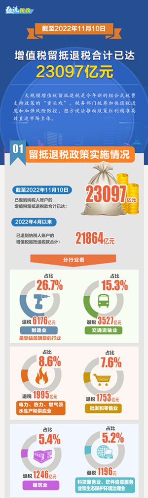 2022年增值税留抵退税合计已达23097亿元!一图了解哪些行业企业受益